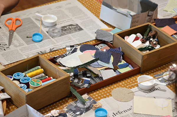 布をちょきちょき…